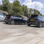 Nowe spalinowe Mini Coopery JCW oparte są ponownie na silniku B48 (231 KM / 380 Nm) i dwusprzęgłowej przekładni DCT. Coupe (F66) przyspiesza w 6.1 sek. 0-100 km/h i pojedzie nawet 250 km/h, kabriolet (F67) jest wolniejszy o 0.3 sek i 5 km/h prędkości maksymalnej. Oba auta napędzane są na przednią oś i dzięki przyrostowi momentu obrotowego o 16%, są sporo żwawsze w niższym zakresie obrotów względem gen F56.