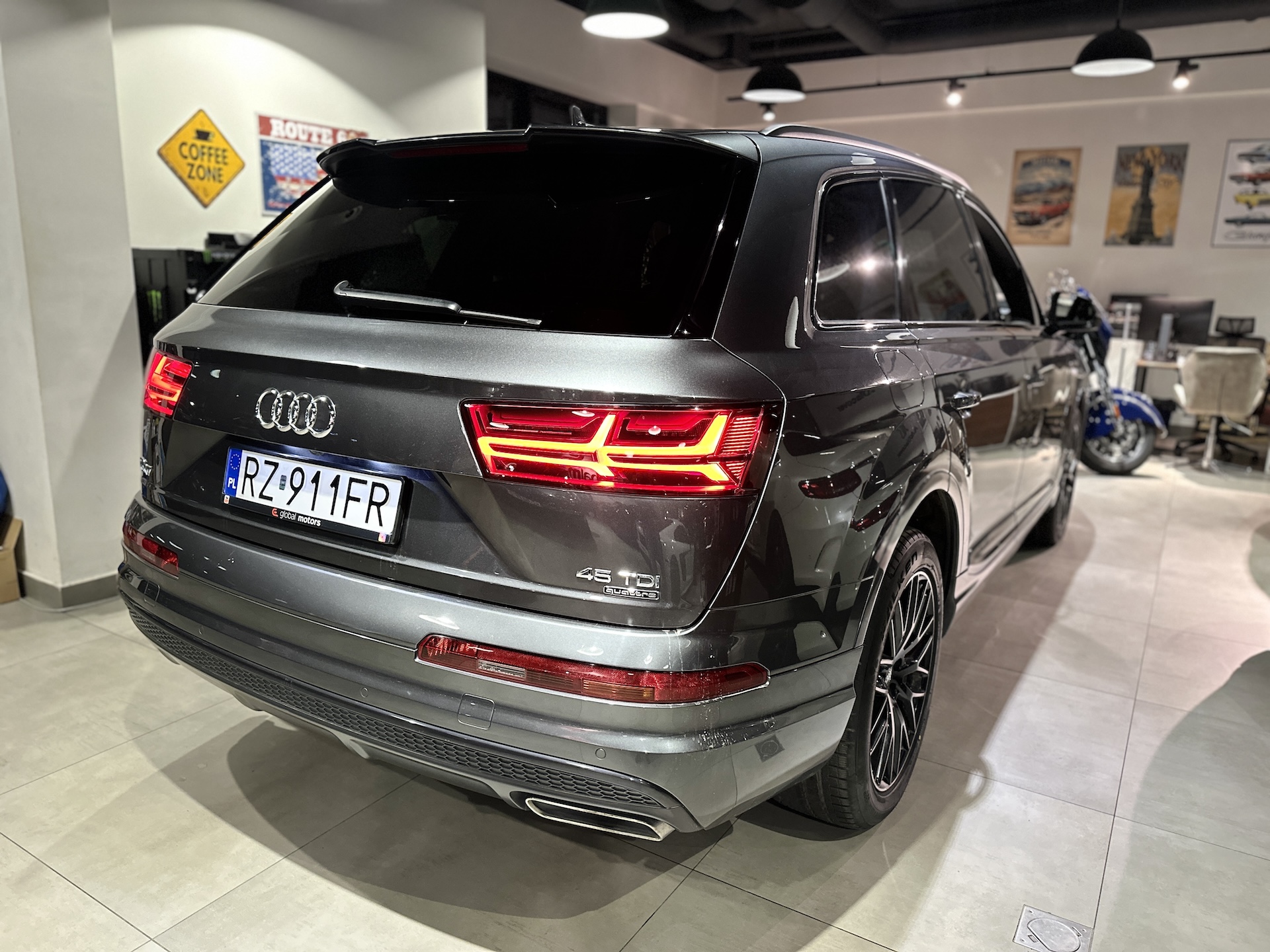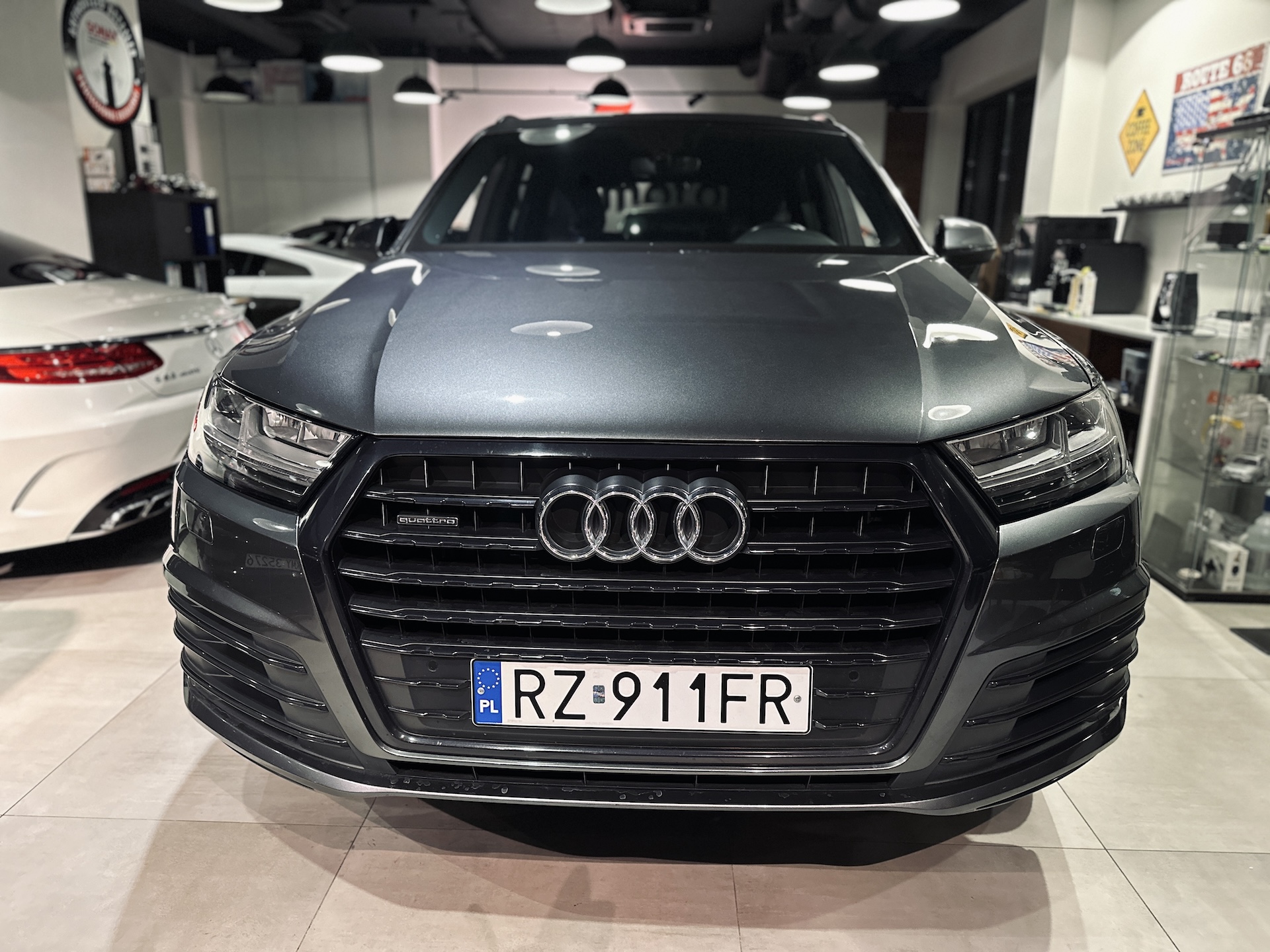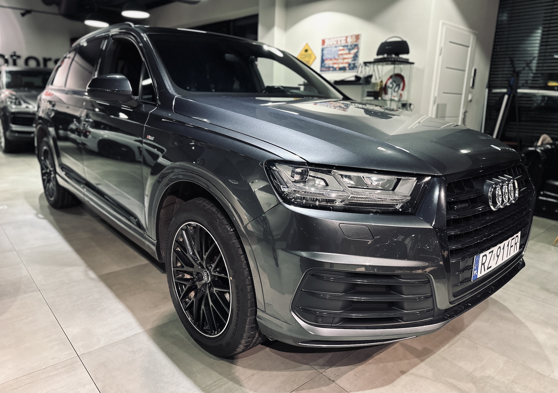 Samochód świeżo serwisie olejowym w ASO Audi oraz montażu nowych opon zimowych Falken.