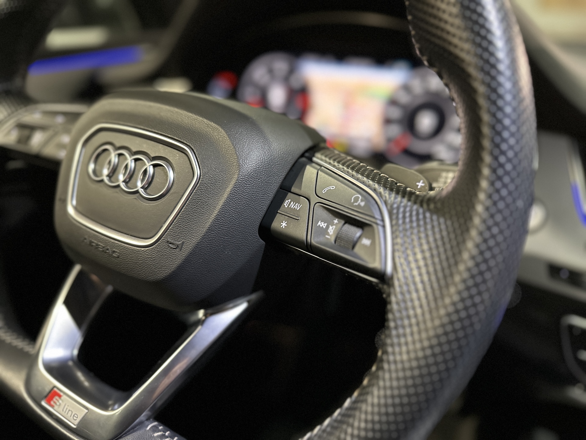 ▫️Kierownica sportowa S Line ze ściętym wieńcem, multimedialna, obszyta skórą