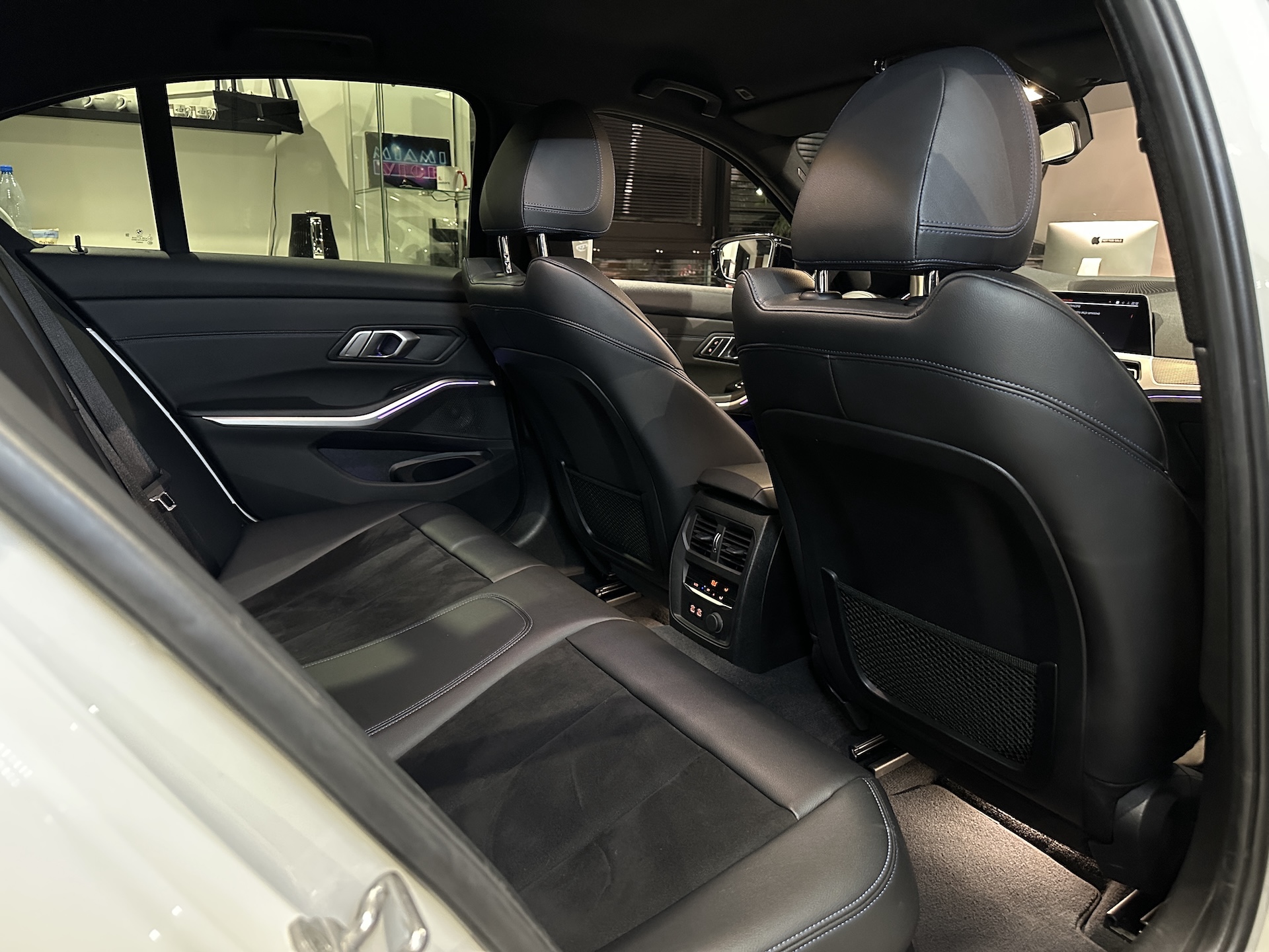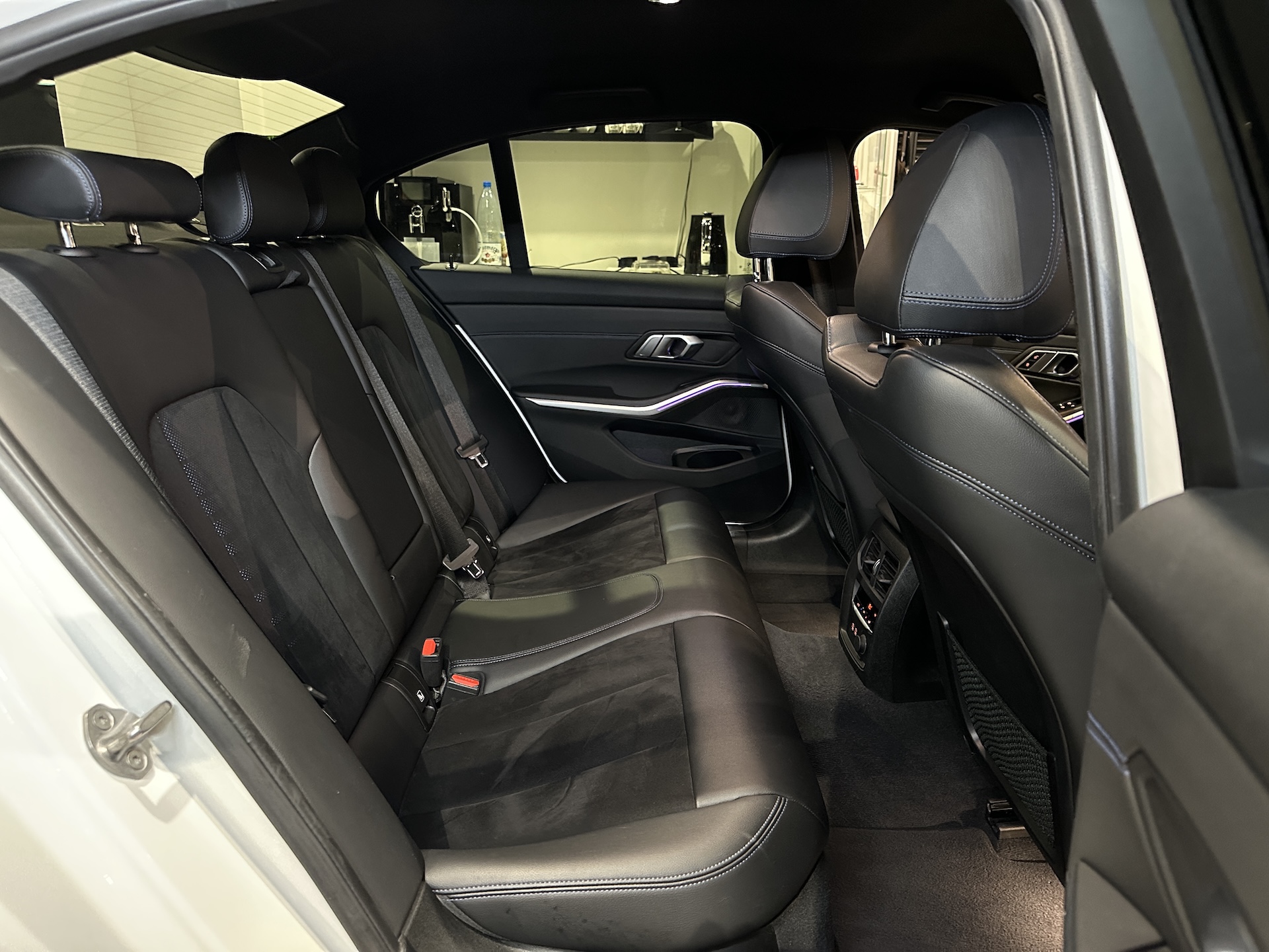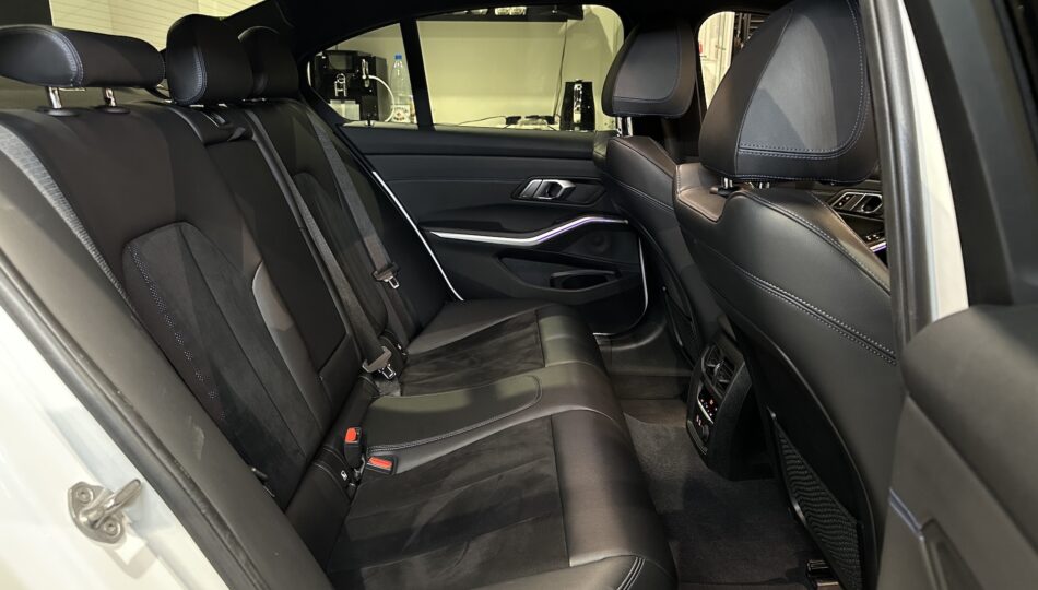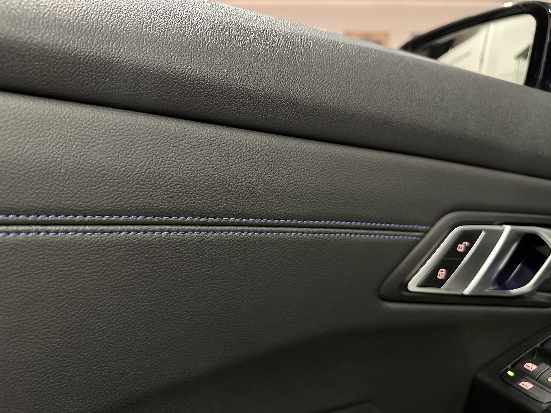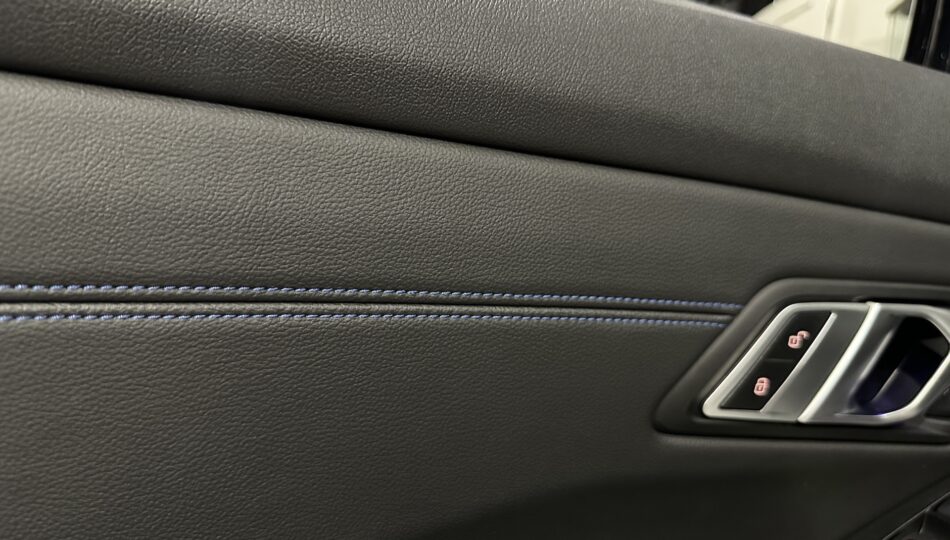 ▫️Tapicerka półskórzana w kolorze czarnym z niebieskimi przeszyciami (Alcantara / Sensatec / Schwarz & Blau)