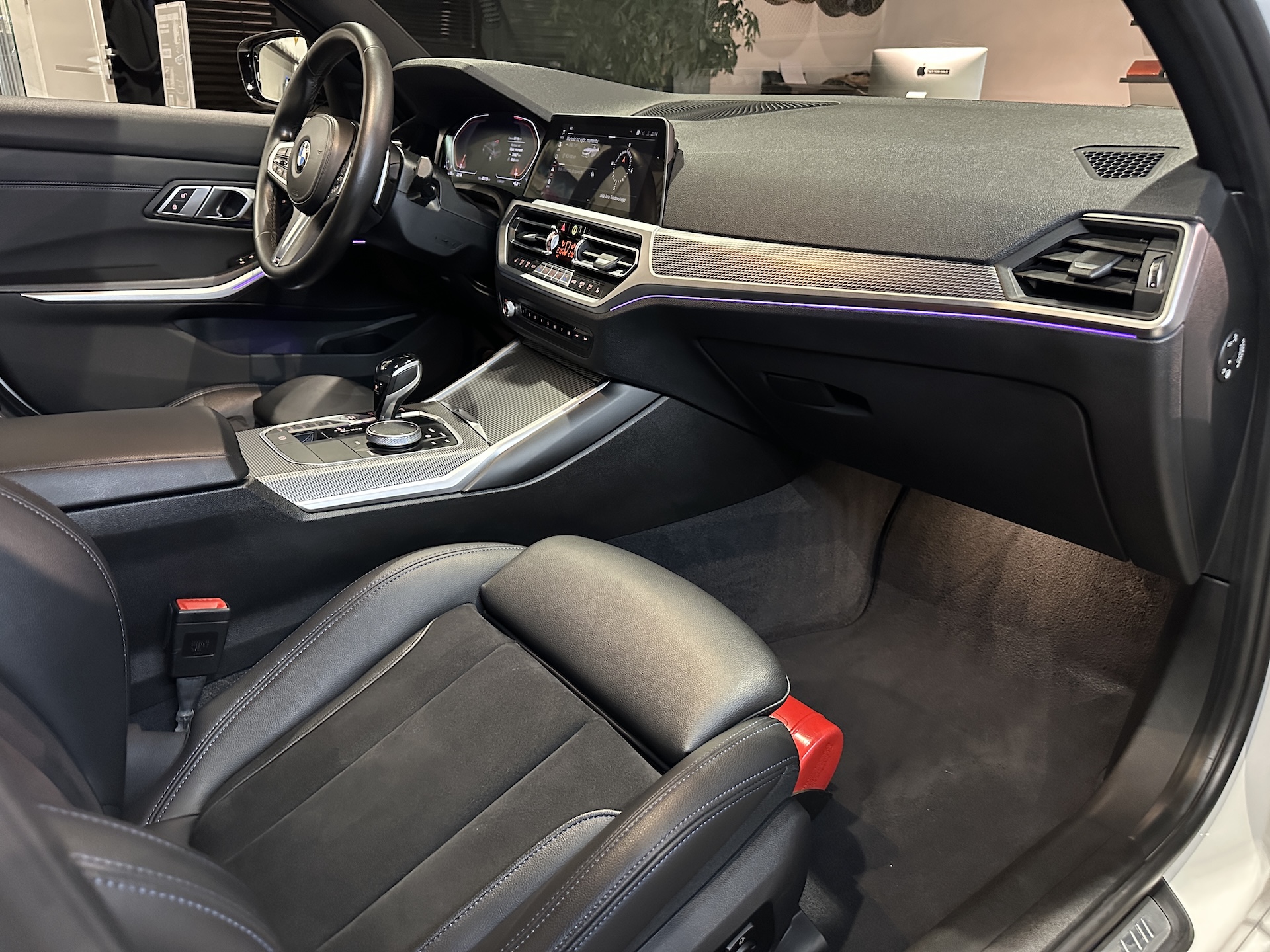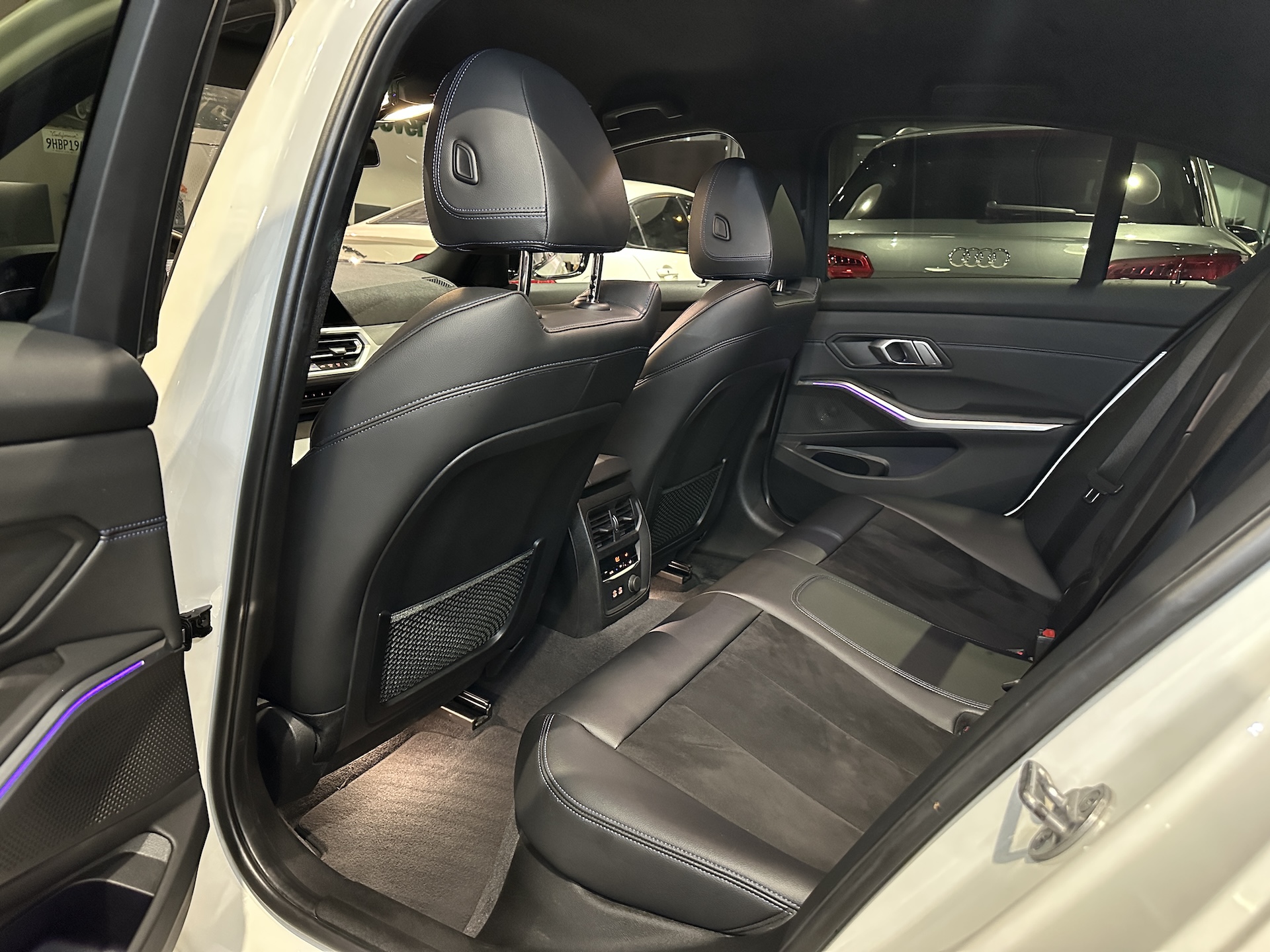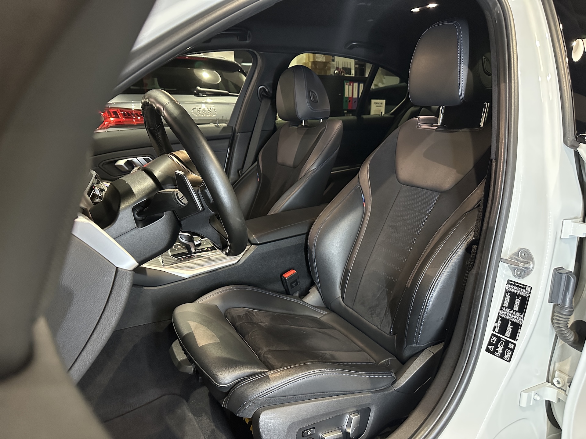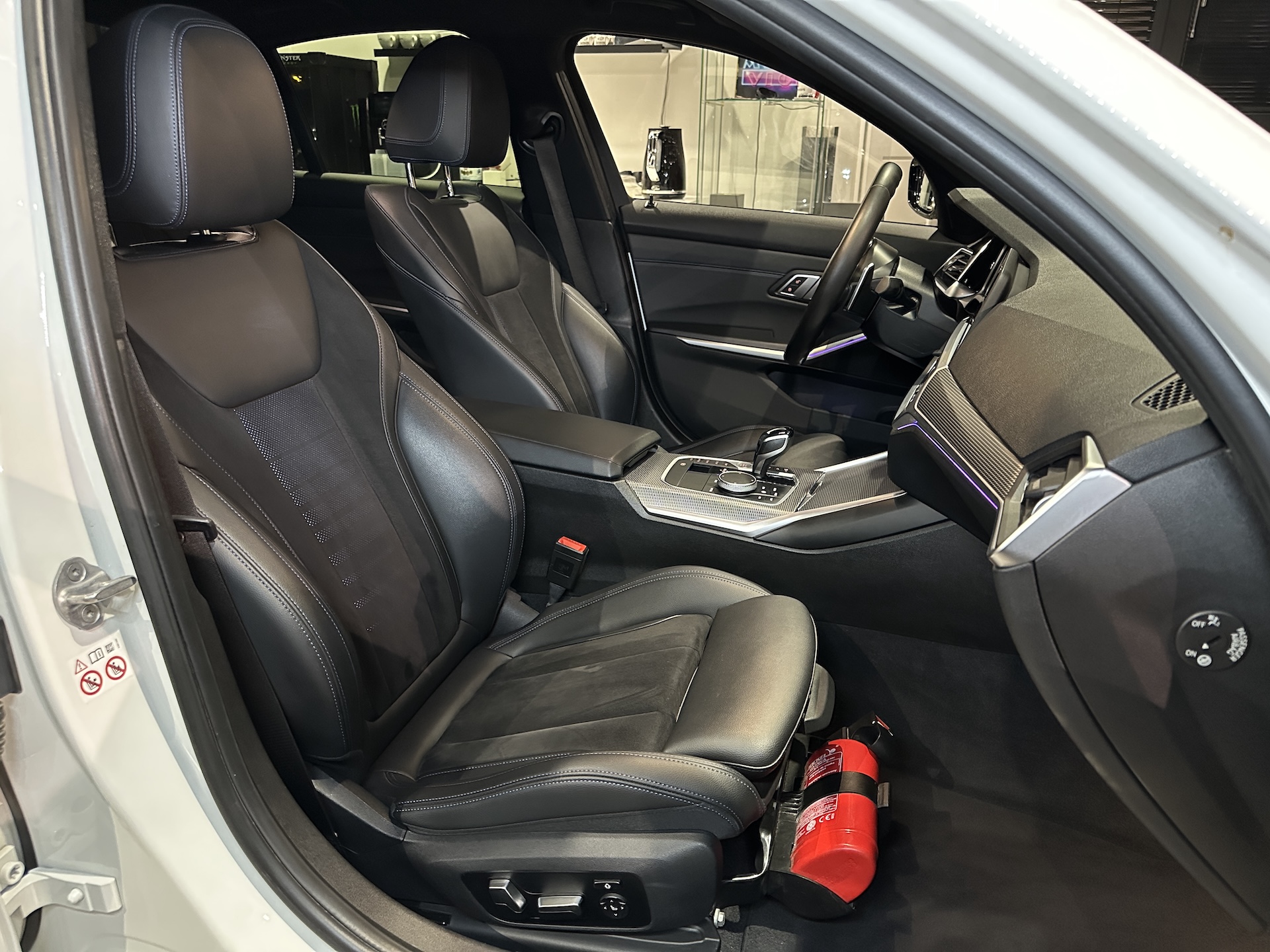 ▫️Tapicerka półskórzana w kolorze czarnym z niebieskimi przeszyciami (Alcantara / Sensatec / Schwarz & Blau)