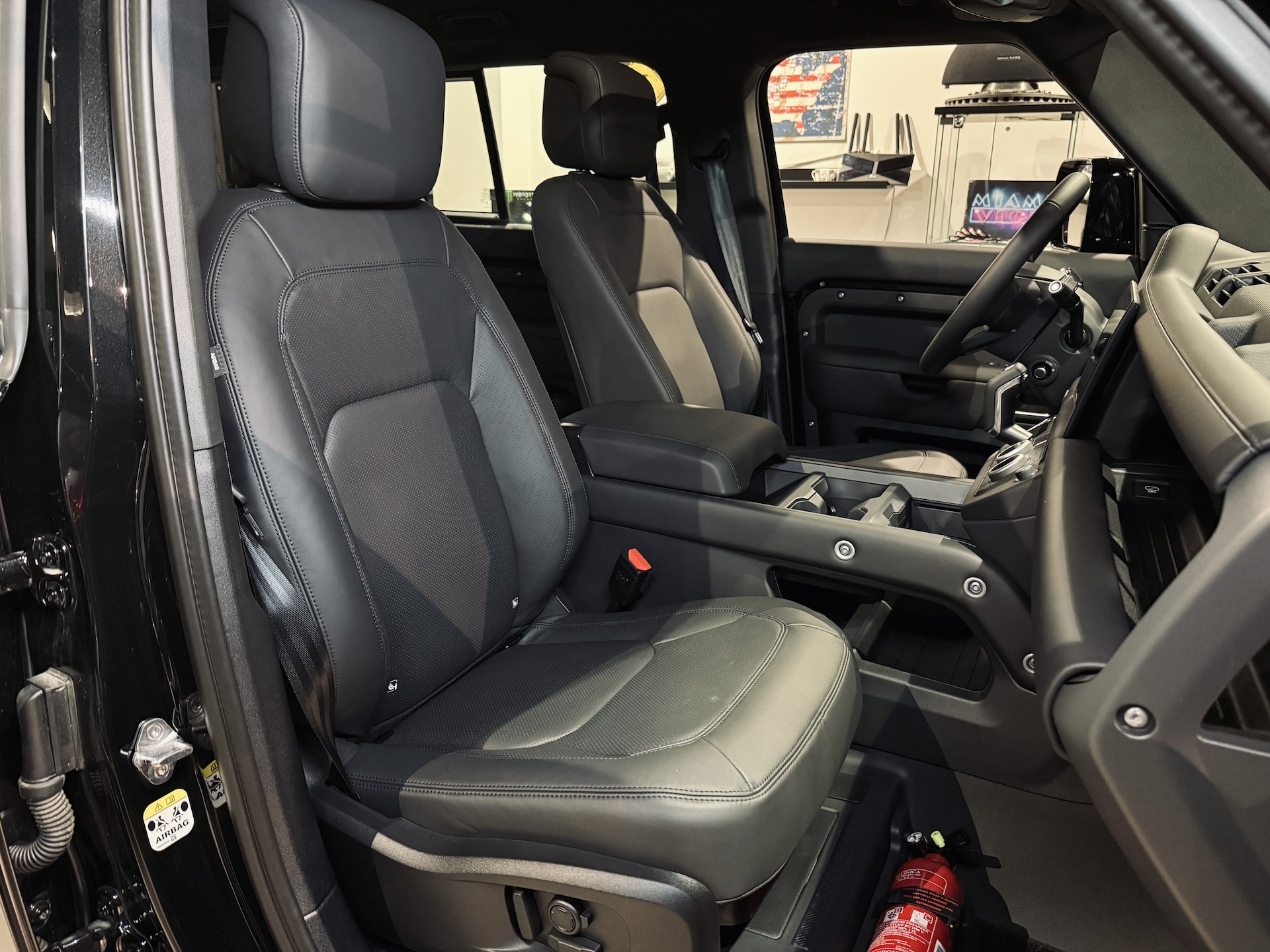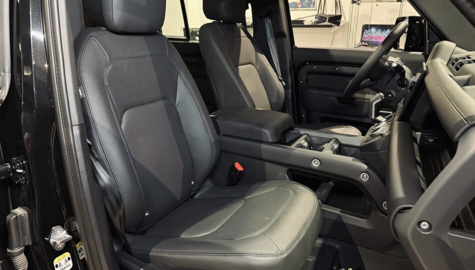 ▫️Fotele komfortowe w skórze Windsor łączonej z materiałem Robustek (kolor Ebony), sterowane elektrycznie w 18 kierunkach (14 elektrycznie/4 manualnie), z podparciem lędźwi, ogrzewane i wentylowane, z pamięcią ustawień